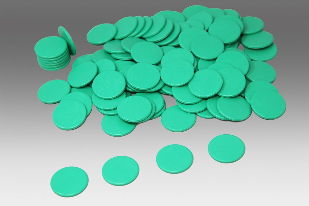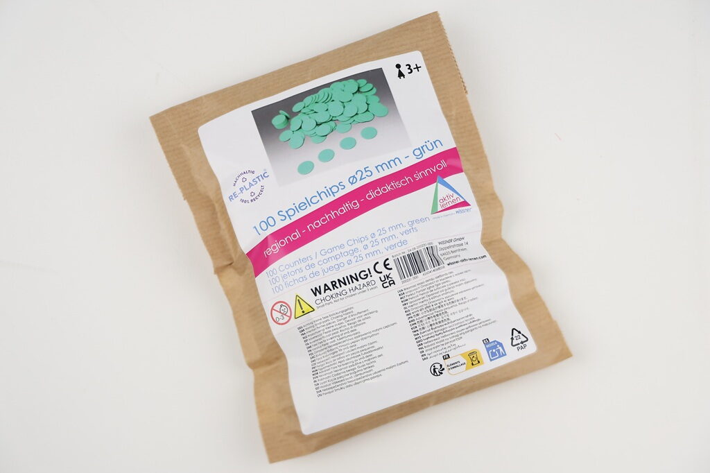 Univerzální herní žetony vhodné jako doplněk ke společenským a výukovým hrám. Podporují rozvoj porozumění množství, třídění a porovnávání. Ideální pro počítání, bodování nebo vizuální znázornění úloh. Vyrobeno ze 100% recyklovaného plastu, který je po použití opakovaně recyklovatelný. Zabaleno v uzavíratelném papírovém sáčku s certifikací FSC. Hlavní vlastnosti: 100 zelených žetonůvhodné pro školní i domácí použitírozvíjí počítání a vnímání množstvívyrobeno v Německu
