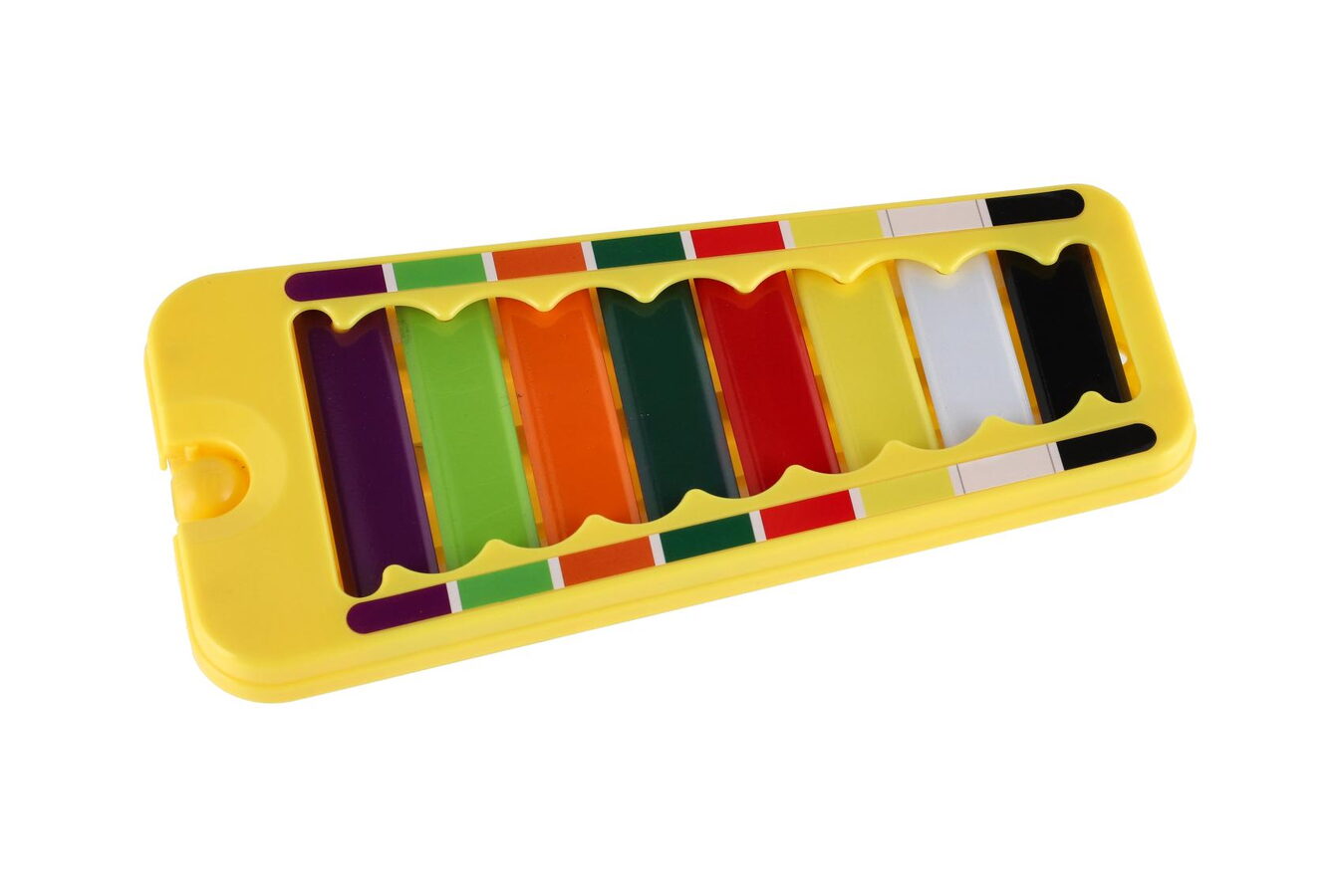 Hudební hračka v podobě barevného xylofonku, na kterém mohou děti vyzkoušet svoje první tóny přiloženými paličkami. Klávesy piánka jsou jemného znění.
