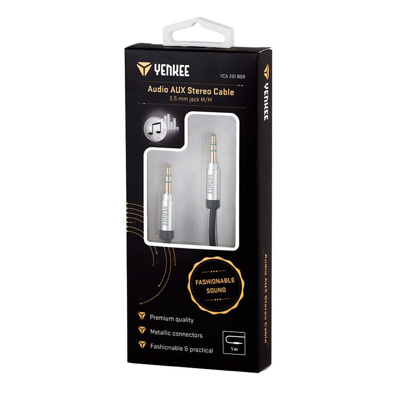 Stereo audio AUX kabel Prvotřídní kvalita Kovové konektory Elegantní a praktický Stereo audio AUX kabel s 3,5mm konektorem Specifikace: Konektor: 2 x 3,5 mm stereo (typu zástrčka - zástrčka) Délka: 1 m Hmotnost (kg): 0.03.