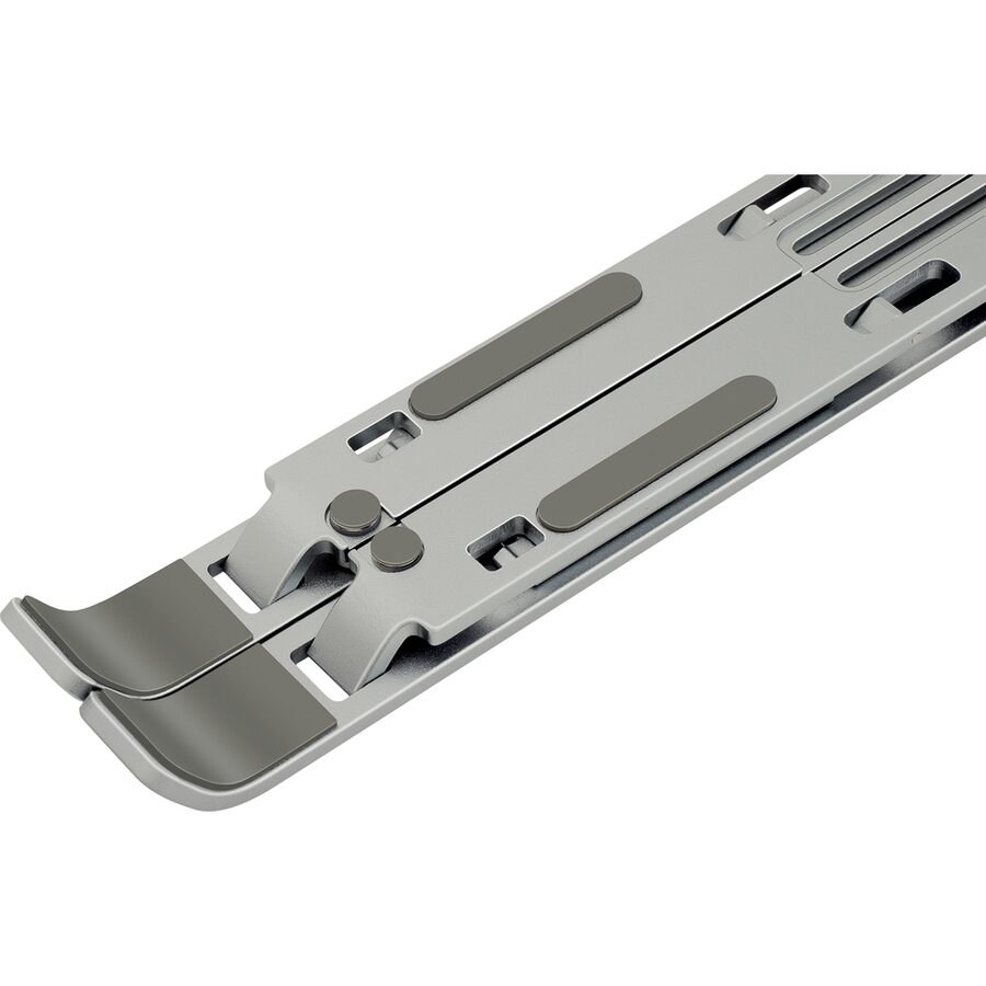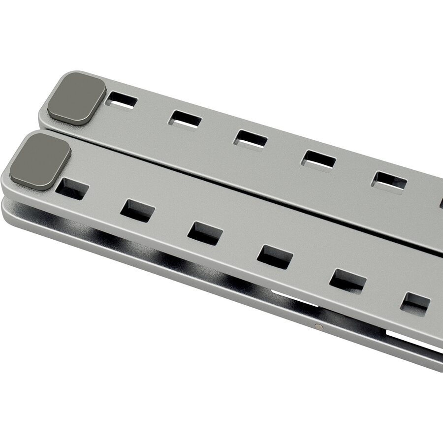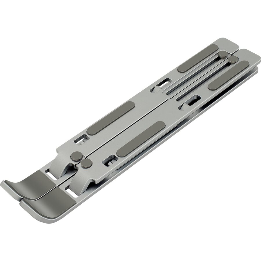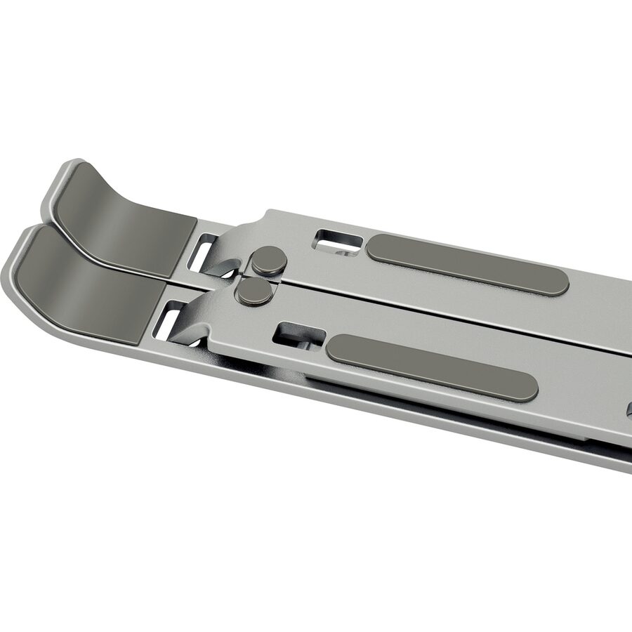 Přenosný kovový stojan pro tablety a notebooky do velikosti až 15.6"" umožňuje nastavení až 6 různých pohledových úhlů. Jednoduchý způsob složení umožňuje vzít držák sebou do kanceláře, domů nebo na cesty. Součástí balení je látkový pytlík pro lepší přesnost držáku. Protiskluzové prvky zajišťují stabilitu při práci a ochranu proti poškrábání vašeho zařízení. Možnost nastavení až 6 pohledových úhlů podporuje lepší ergonomii těla při práci. Notebook využijete jako stolní počítač. Konstrukce držáku zlepšuje chlazení vašeho notebooku při práci.