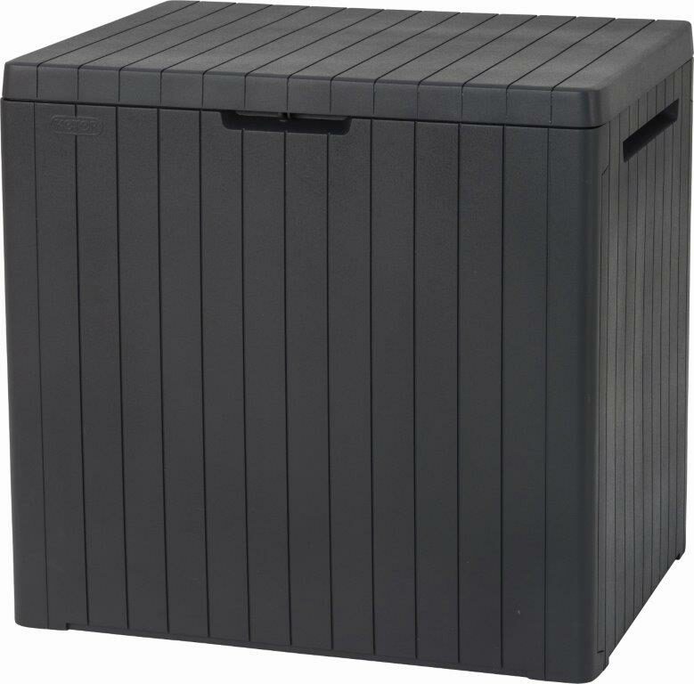 Úložný zahradní box City Storage značky Keter v grafitové barvě má kapacitu 113 litrů. Svým designem připomíná přírodní dřevěné palubky. Skvěle tak doplní jak moderní, tak i tradiční look okolí. Velkou výhodou boxu je jeho nízká hmotnost a voděodolnost.