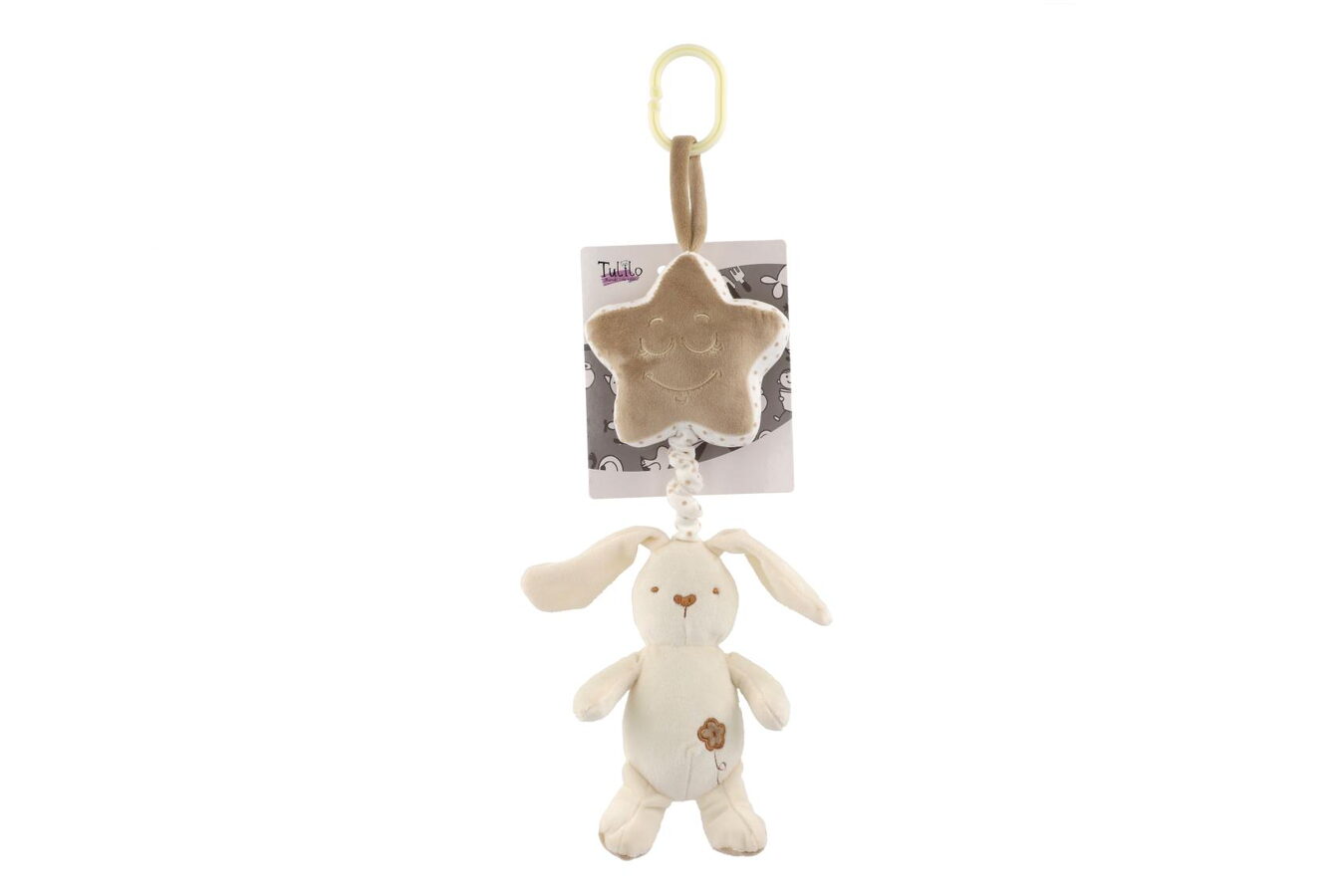 Natahovací plyšový zajíc s hvězdou hraje příjemnou melodii, která miminko uklidní a pomáhá mu při usínání. Hračku lze zavěsit za pomocí klipu na postýlku nebo kočárek. Hrací strojek je zabudovaný uvnitř hvězdičky, zajíček slouží jako natahovací klip.