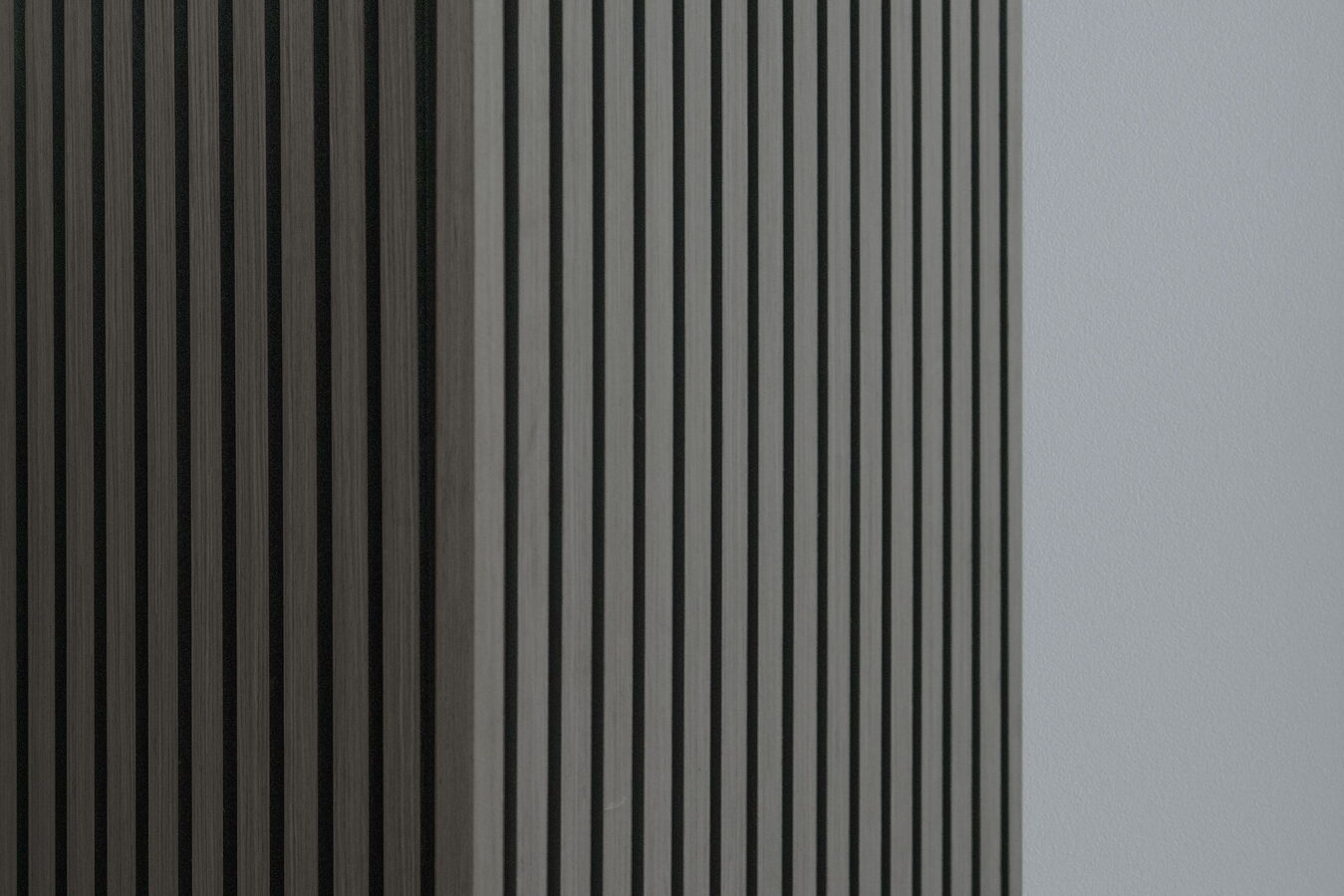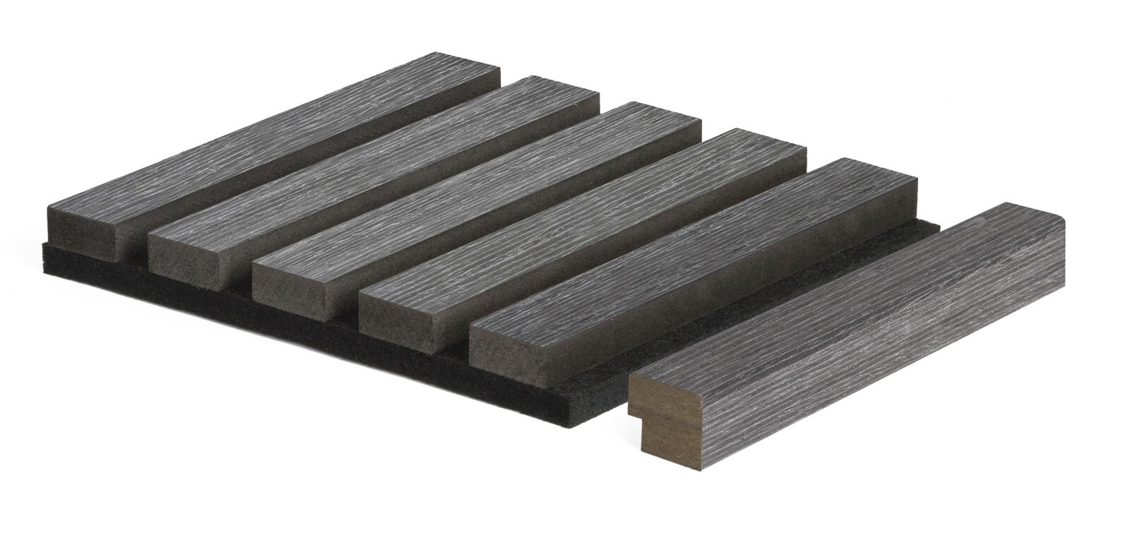Zakončovací lišta G21 v barvě tmavě šedý dub je ideální pro elegantní zakončení obložení z akustických panelů.