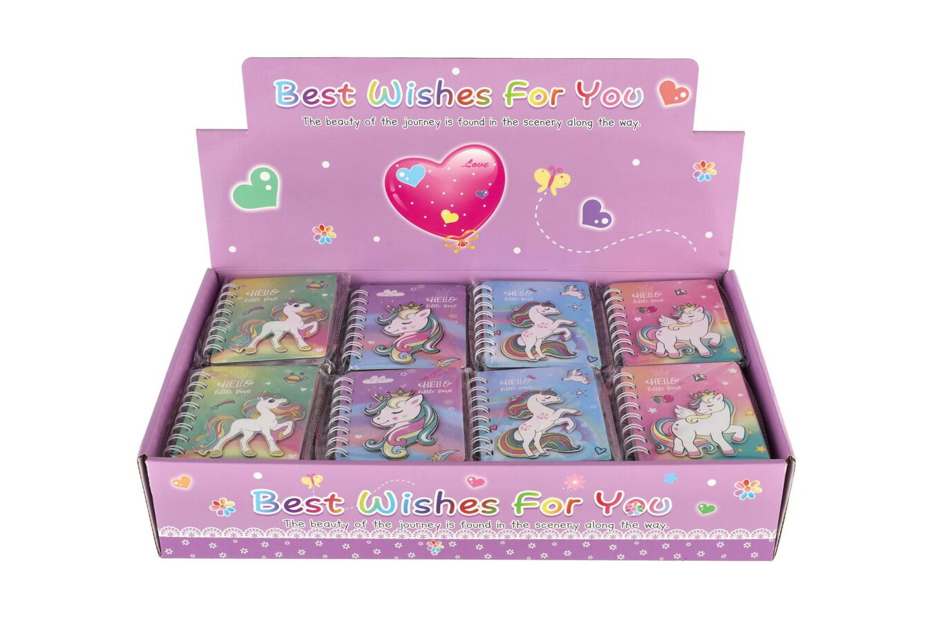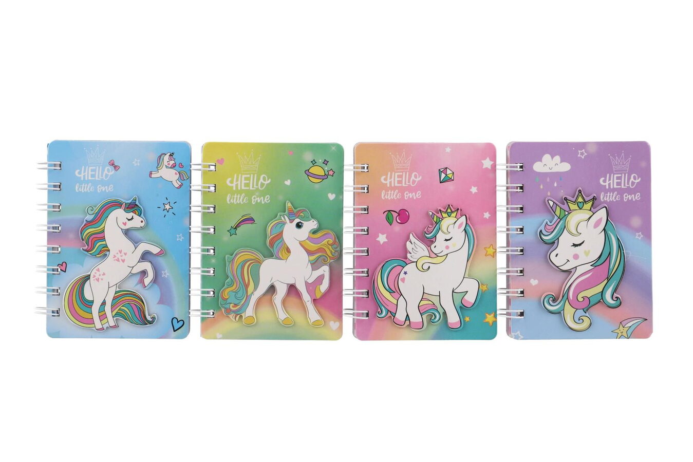 Zápisník/blok jednorožec kroužkový 9,5x12cm 4 druhy v sáčku 50ks v boxu