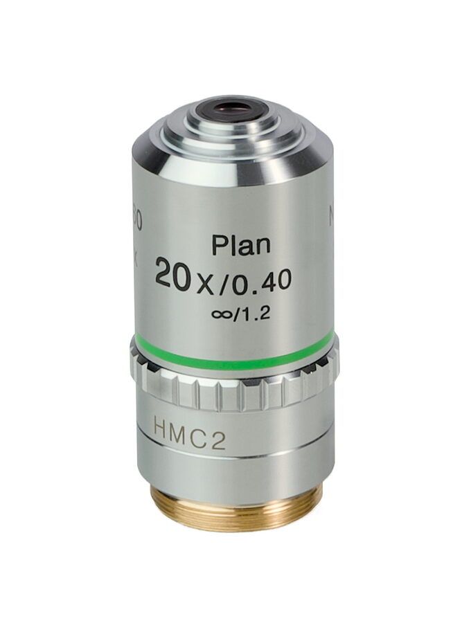 - Hoffmanův rovinný achromatický objektiv s korekcí na nekonečno: 20x/0,40 ?/1,2, parfokální vzdálenost: 60 mm
