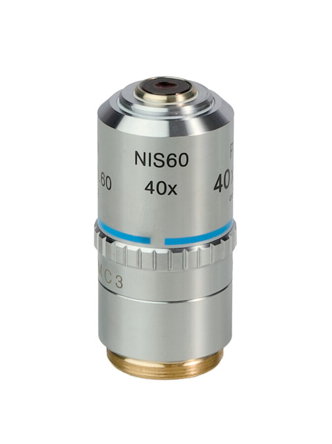 - Hoffmanův rovinný achromatický objektiv s korekcí na nekonečno: 40x/0,60 ?/1,2, parfokální vzdálenost: 60 mm