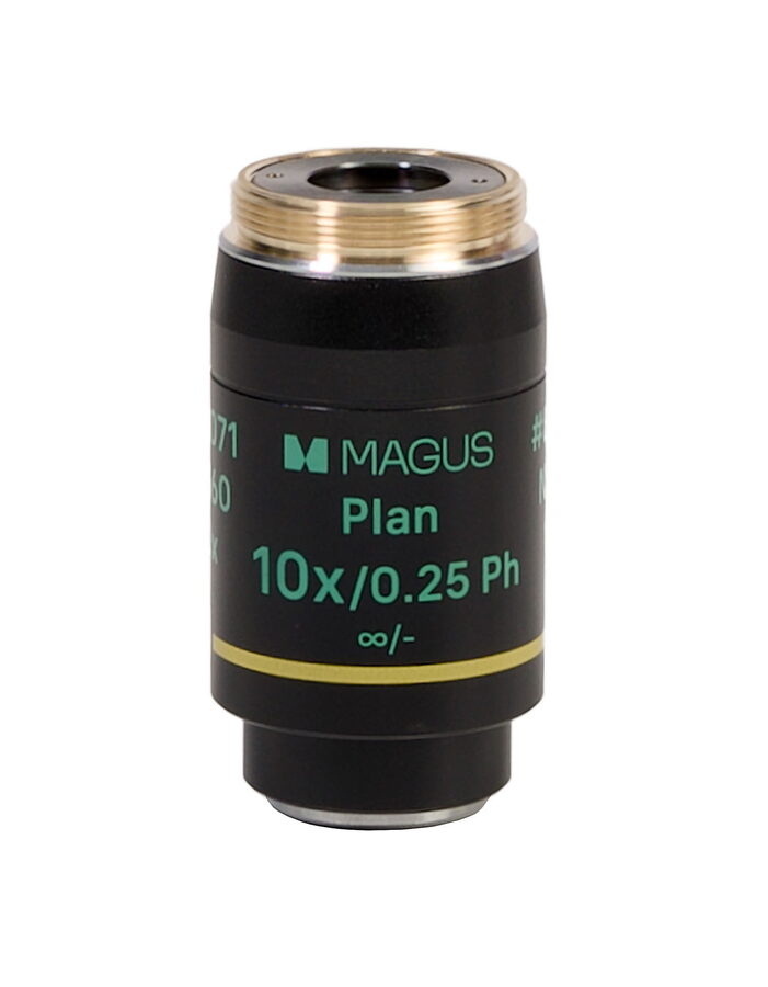 - Rovinný achromatický fázový objektiv s korekcí na nekonečno Plan 10x/0,25 Ph ?/- WD 10,2 mm, parfokální vzdálenost: 60 mm