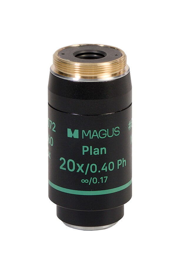- Rovinný achromatický fázový objektiv s korekcí na nekonečno Plan 20x/0,40 Ph ?/0,17 WD 4,8 mm, parfokální vzdálenost: 60 mm