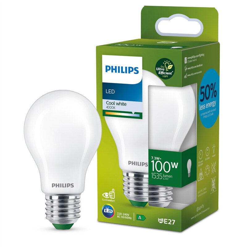 Vyhněte se častým výměnám žárovek. S životností až 50 000 hodin vydrží naše LED UltraEfficient 3,5krát déle než standardní LED Philips, takže si můžete dokonalé řešení osvětlení užívat více než 50 let.