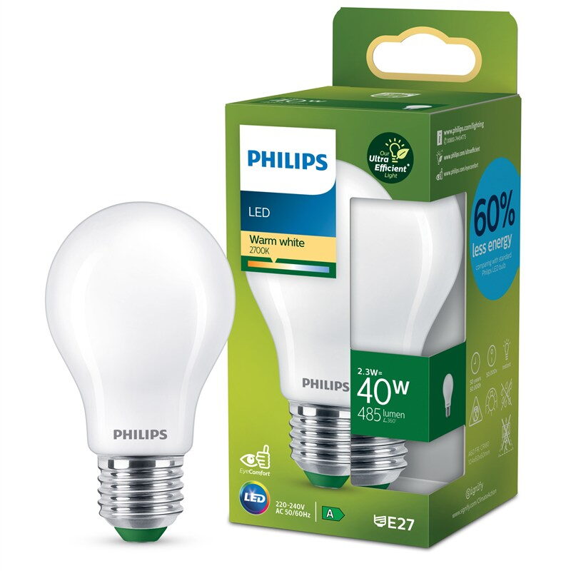 Svítidla LED Philips UltraEfficient zajišťují krásné světlo. Nabízí vám výjimečně dlouhou životnost (50 000 hodin) a přináší okamžité a výrazné energetické úspory. Měňte svítidla méně často a současně si vychutnejte světlo, které je šetrné k očím, protože využívá naši osvědčenou technologii EyeComfort.