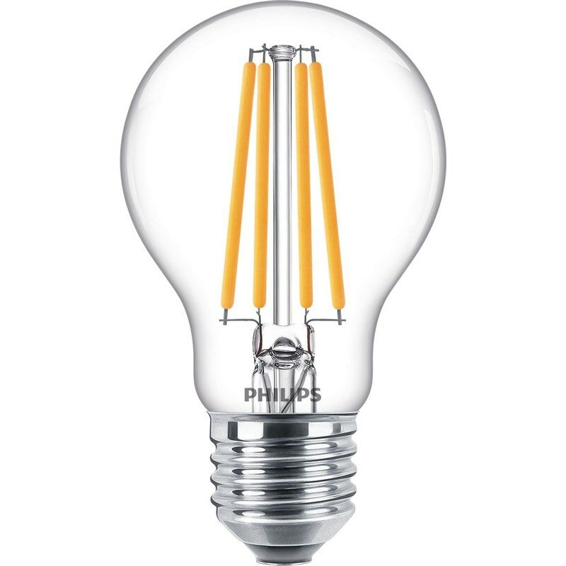 Žárovky Philips LED se vyznačují krásným teplým bílým světlem, výjimečně dlouhou životností a značnými energetickými úsporami, které okamžitě pocítíte. Čisté a elegantní provedení z nich činí dokonalou alternativu k běžným čirým rozžhaveným žárovkám.