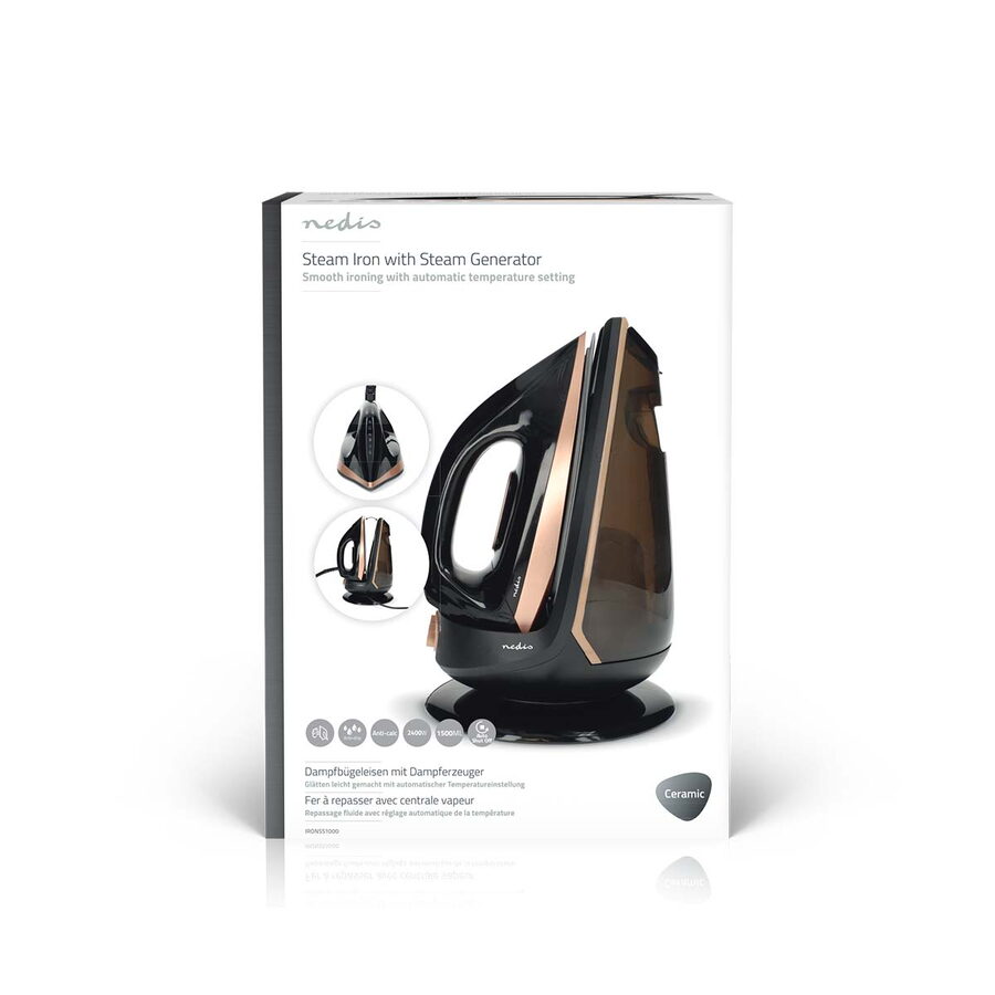 Parní generátor Nedis se zahřeje během 20 sekund, žehlení tedy začíná okamžitě. Kontinuální výstup páry 30–40 g/min a tlak 5–7 barů umožňují efektivně vyhlazovat i odolné záhyby. Keramická plocha zajišťuje rovnoměrné rozložení tepla a dlouhou životnost.