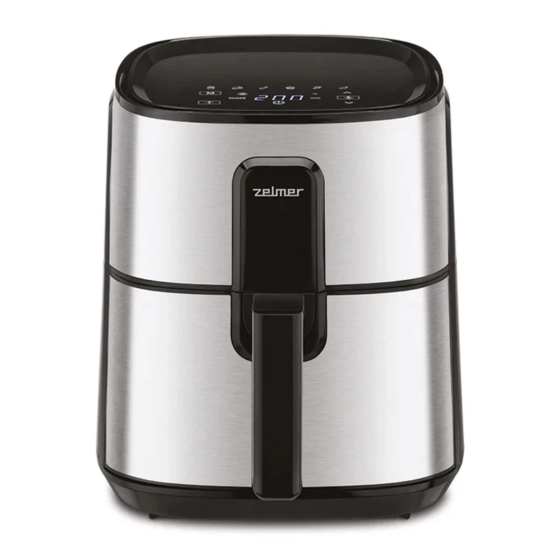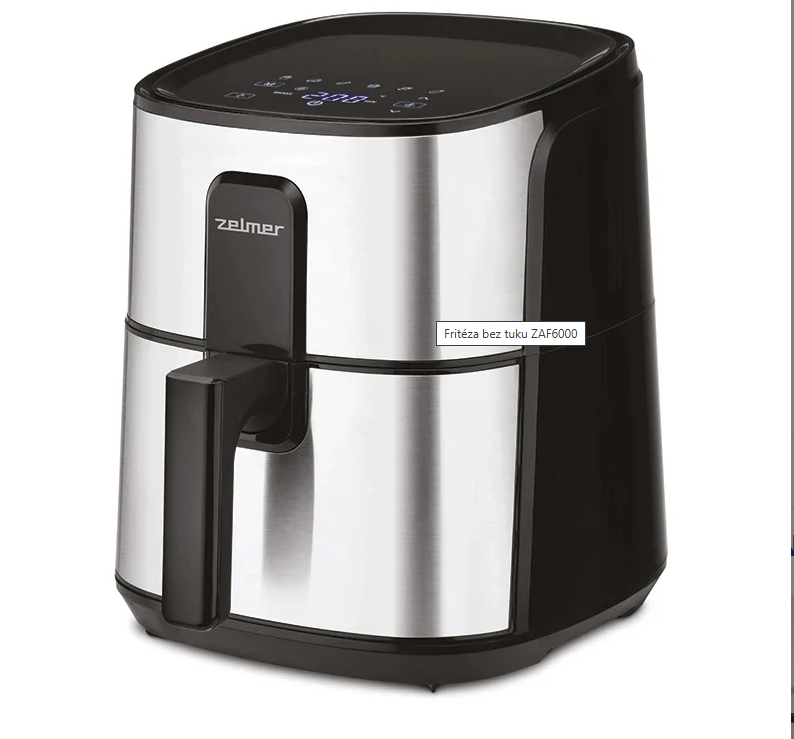 Horkovzdušná fritéza Zelmer ZAF6000. Výkon 1500 W a objemem 6 l je dokonalým řešením pro přípravu zdravých a křupavých pokrmů bez tuku. Díky 6 automatickým programům, digitální kontrole času a teploty a dotykovému ovládacímu panelu je obsluha jednoduchá a intuitivní. Regulace teploty v rozmezí 80-200 °C, časovač až na 60 minut a protiskluzové nožičky zajišťují pohodlné a bezpečné používání.