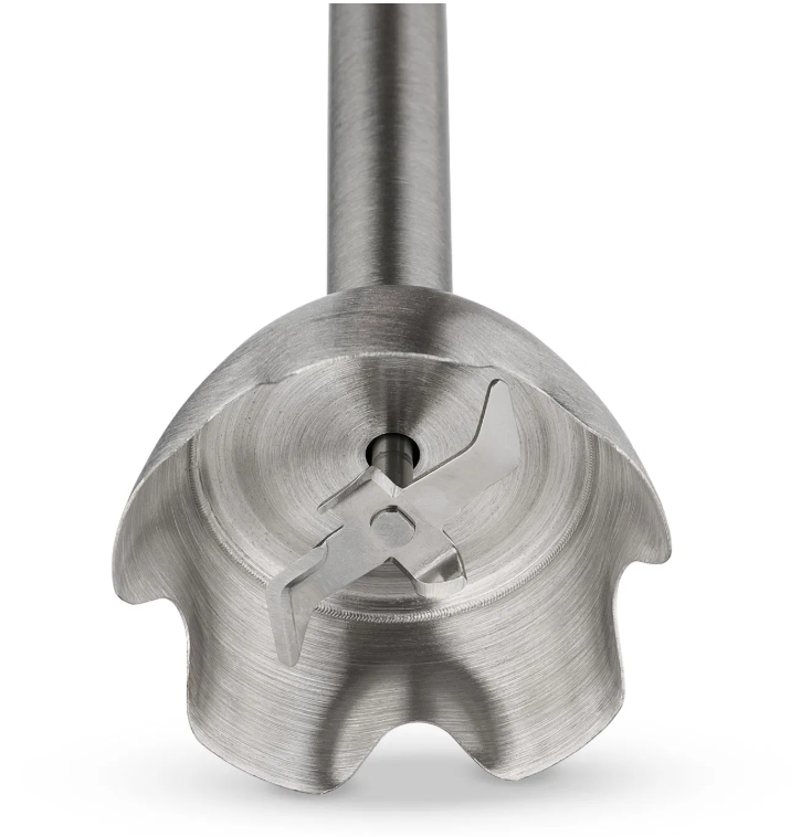 Odnímatelná nerezová mixovací noha zajišťuje snadné čištění a dlouhou životnost přístroje. Dvojice vysoce účinných nerezových nožů je navržena pro rychlé a rovnoměrné zpracování surovin, zatímco technologie proti rozstřiku surovin udržuje vaši kuchyň čistou během používání.