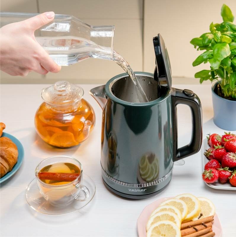 Černé nebo kovové detaily jsou zárukou dokonalého sladění s moderní tmavou kuchyní. Design konvice Zelmer odkazuje i na další domácí spotřebiče, u nichž převládají tmavé barvy - můžete si být jisti, že spotřebiče budou tvořit soudržný designový celek.