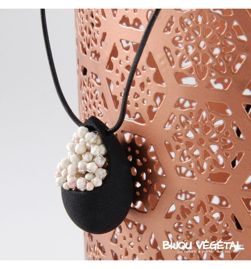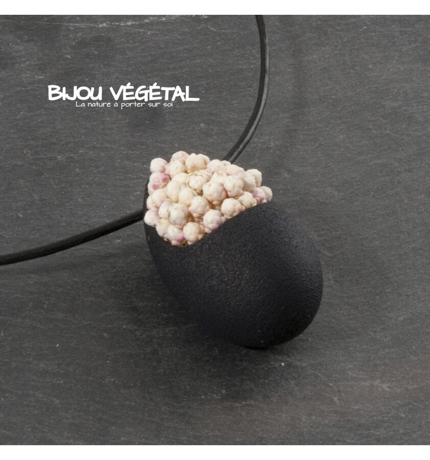 Živé šperky - Náhrdelník Slza černý s trvalými bílými květy Nádherný módní doplněk ve výrazné barvě v kombinaci s trvalými bílými květy vytváří neobyčejný elegantní živý šperk. Živé šperky jsou stabilizovány patentovanou technologií a nepotřebují prakticky žádnou údržbu. Živé šperky sou baleny v krabičce, součástí balení je náhradní trvalá rostlina. Živé šperky jsou vyrobeny ručně ve Francii. Výrobce garantuje neomezenou životnost, při vhodném používání. Živé šperky nesmí být vystaveny velkým teplotním změnám a přímému proudu vody (při koupání, mytí nádobí apod.) Živé šperky byly poprvé představeny na mezinárodním veletrhu klenotů Bijorhca v Paříži roku 2015. Vytvořily je designové návrhářky a dlouholeté kamarádky Maryse a Manuella pro společnost Radis et Capucine. Živé šperky umožňují stálé propojení s přírodou a přinášejí ji doslova na dosah ruky. Francouzská značka Radis et Capucine