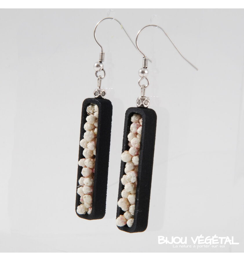 Živé šperky - Náušnice Jardiniere černé s trvalými bílými květy Nádherný módní doplněk ve výrazné barvě v kombinaci s trvalými bílými květy vytváří neobyčejný elegantní živý šperk. Živé šperky jsou stabilizovány patentovanou technologií a nepotřebují prakticky žádnou údržbu. Živé šperky sou baleny v krabičce, součástí balení je náhradní trvalá rostlina. Živé šperky jsou vyrobeny ručně ve Francii. Výrobce garantuje neomezenou životnost, při vhodném používání. Živé šperky nesmí být vystaveny velkým teplotním změnám a přímému proudu vody (při koupání, mytí nádobí apod.) Živé šperky byly poprvé představeny na mezinárodním veletrhu klenotů Bijorhca v Paříži roku 2015. Vytvořily je designové návrhářky a dlouholeté kamarádky Maryse a Manuella pro společnost Radis et Capucine. Živé šperky umožňují stálé propojení s přírodou a přinášejí ji doslova na dosah ruky. Francouzská značka Radis et Capucine