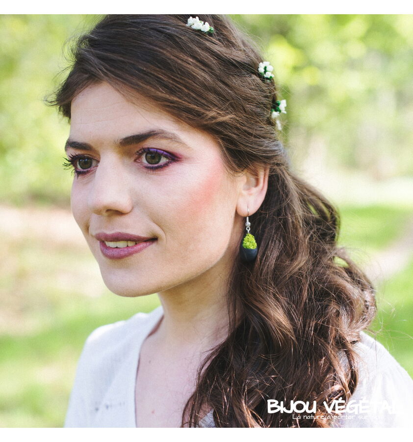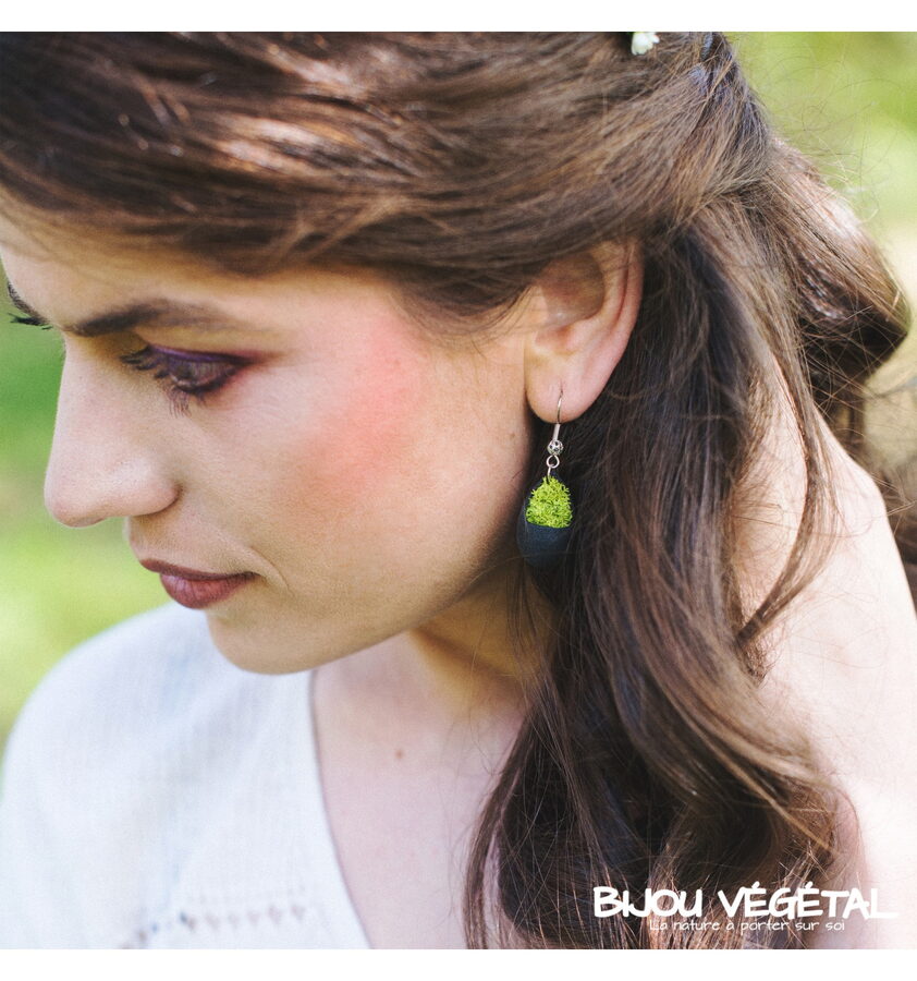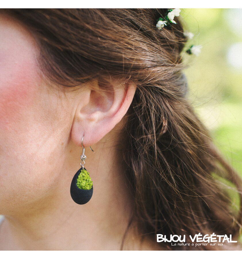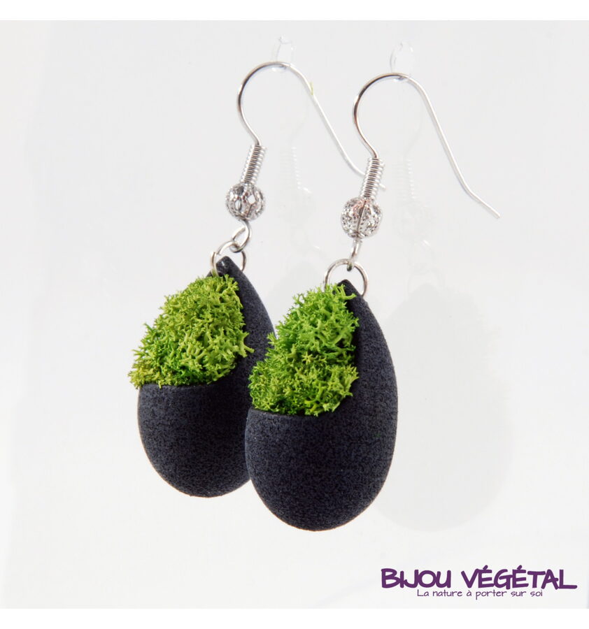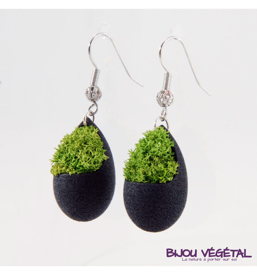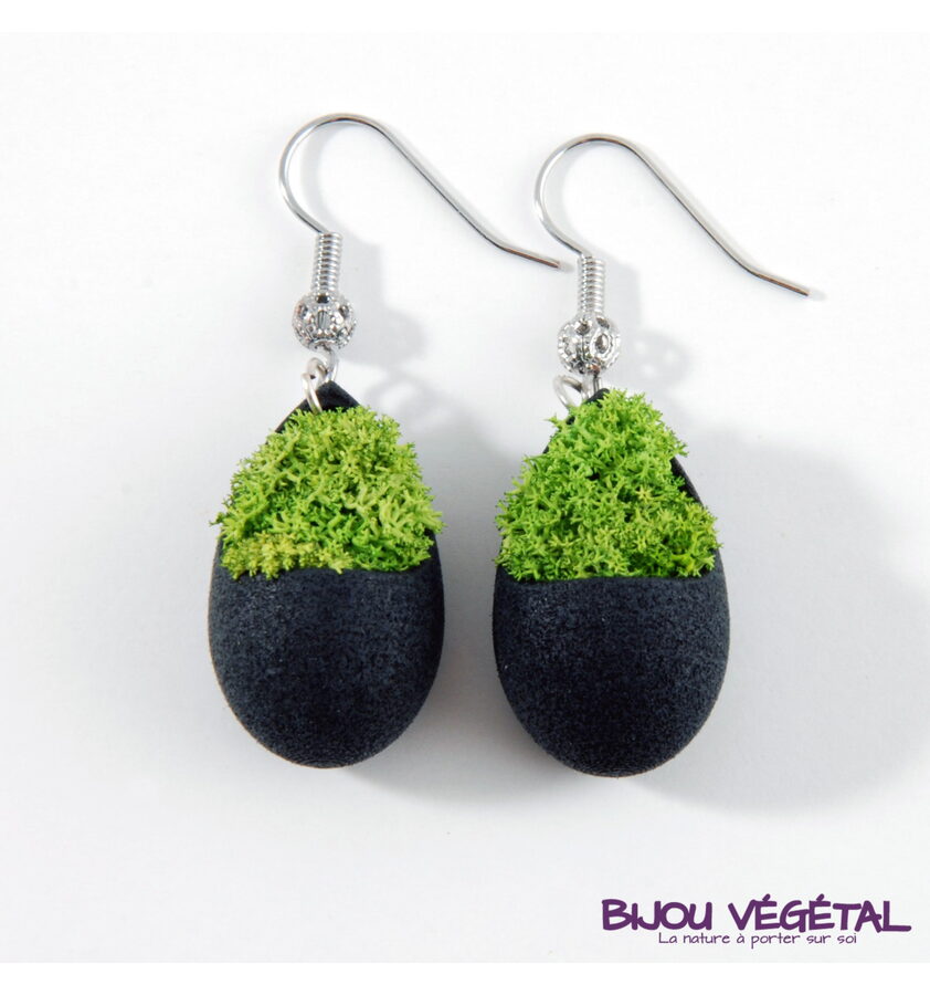 Živé šperky - Náušnice Slza černé s lišejníkem Nádherný módní doplněk ve výrazné barvě v kombinaci s jasně zeleným lišejníkem vytváří neobyčejný elegantní živý šperk. Živé šperky jsou stabilizovány patentovanou technologií a nepotřebují prakticky žádnou údržbu. Živé šperky sou baleny v krabičce, součástí balení je náhradní trvalá rostlina. Živé šperky jsou vyrobeny ručně ve Francii. Výrobce garantuje neomezenou životnost, při vhodném používání. Živé šperky nesmí být vystaveny velkým teplotním změnám a přímému proudu vody (při koupání, mytí nádobí apod.) Živé šperky byly poprvé představeny na mezinárodním veletrhu klenotů Bijorhca v Paříži roku 2015. Vytvořily je designové návrhářky a dlouholeté kamarádky Maryse a Manuella pro společnost Radis et Capucine. Živé šperky umožňují stálé propojení s přírodou a přinášejí ji doslova na dosah ruky. Francouzská značka Radis et Capucine