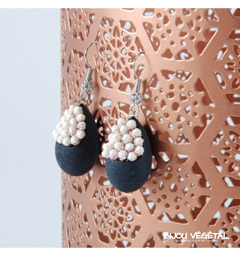 Živé šperky - Náušnice Slza černé s trvalými bílými květy Nádherný módní doplněk ve výrazné barvě v kombinaci s trvalými bílými květy vytváří neobyčejný elegantní živý šperk. Živé šperky jsou stabilizovány patentovanou technologií a nepotřebují prakticky žádnou údržbu. Živé šperky sou baleny v krabičce, součástí balení je náhradní trvalá rostlina. Živé šperky jsou vyrobeny ručně ve Francii. Výrobce garantuje neomezenou životnost, při vhodném používání. Živé šperky nesmí být vystaveny velkým teplotním změnám a přímému proudu vody (při koupání, mytí nádobí apod.) Živé šperky byly poprvé představeny na mezinárodním veletrhu klenotů Bijorhca v Paříži roku 2015. Vytvořily je designové návrhářky a dlouholeté kamarádky Maryse a Manuella pro společnost Radis et Capucine. Živé šperky umožňují stálé propojení s přírodou a přinášejí ji doslova na dosah ruky. Francouzská značka Radis et Capucine