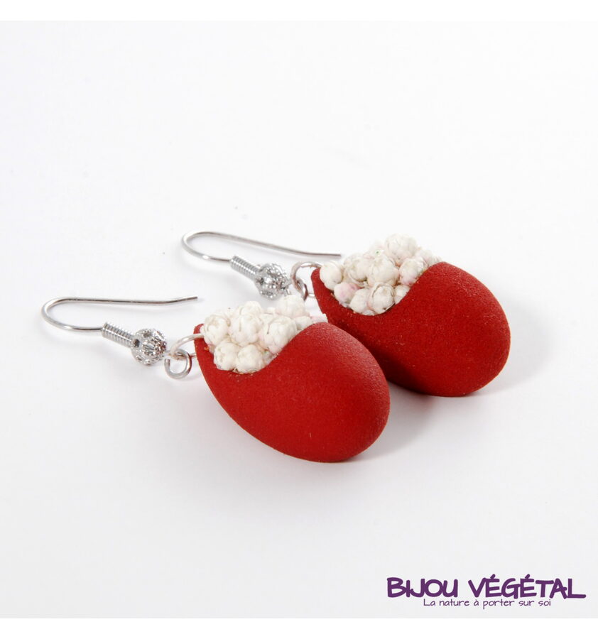 Živé šperky - Náušnice Slza červené s trvalými bílými květy
