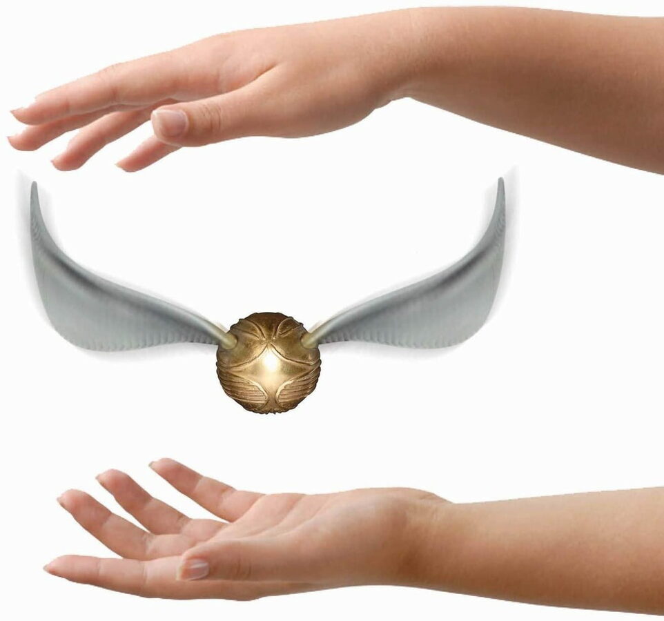 Létající replika Zlatonky, kterou znáte ze hry Famfrpál. Zlatonka je umístěna na silonových vláknech, pohyb křídel zajišťují vložené baterie. Díky této kombinaci můžete předvádět zajímavé triky pohybem vašich rukou. K provozu jsou potřeba 2 baterie, které jsou součástí balení, balení obsahuje rovněž podstavec.