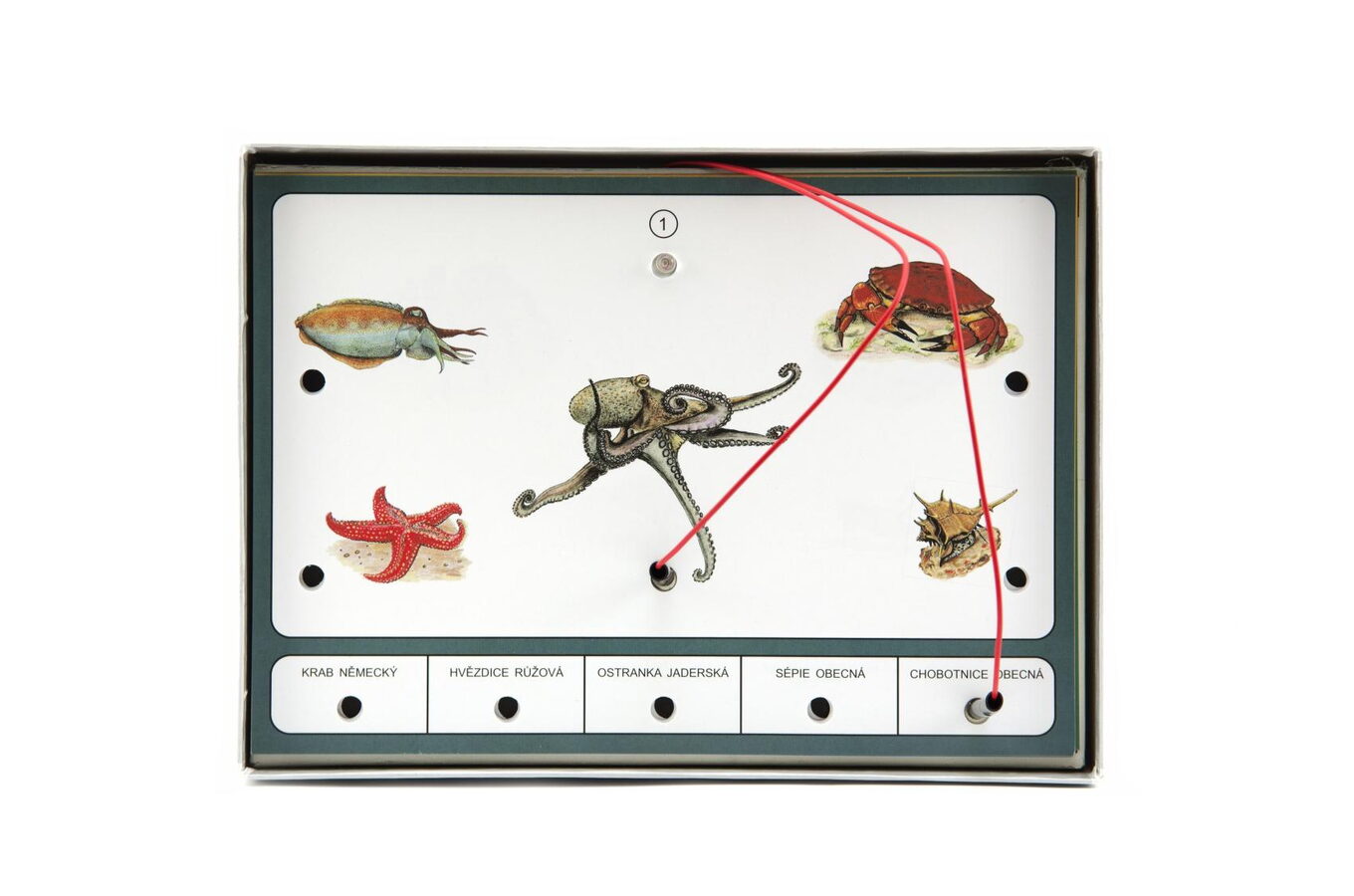 Po výběru otázky dítě zvolí odpověď a její správnost si ověří tak, že se dotkne jedním testovacím kolíkem kontaktní plošky u otázky a druhým kolíkem plošky u odpovědi.