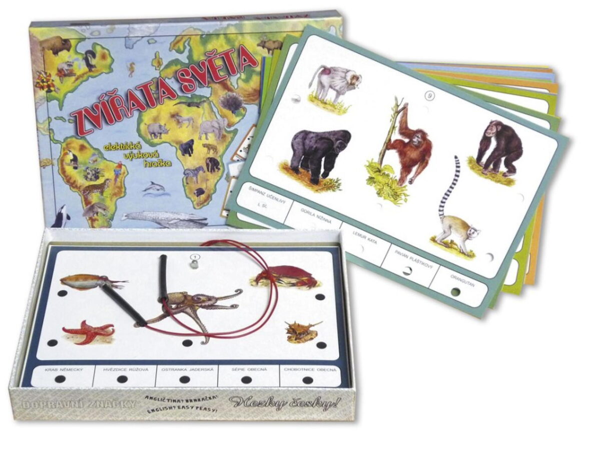 Hračka obsahuje 16 výměnných listů s vyobrazeními 80 nejznámějších zvířat naší planety. Ve spodní části každého listu jsou názvy vyobrazených zvířat a úkolem je přiřadit ke každému obrázku zvířete správný název.