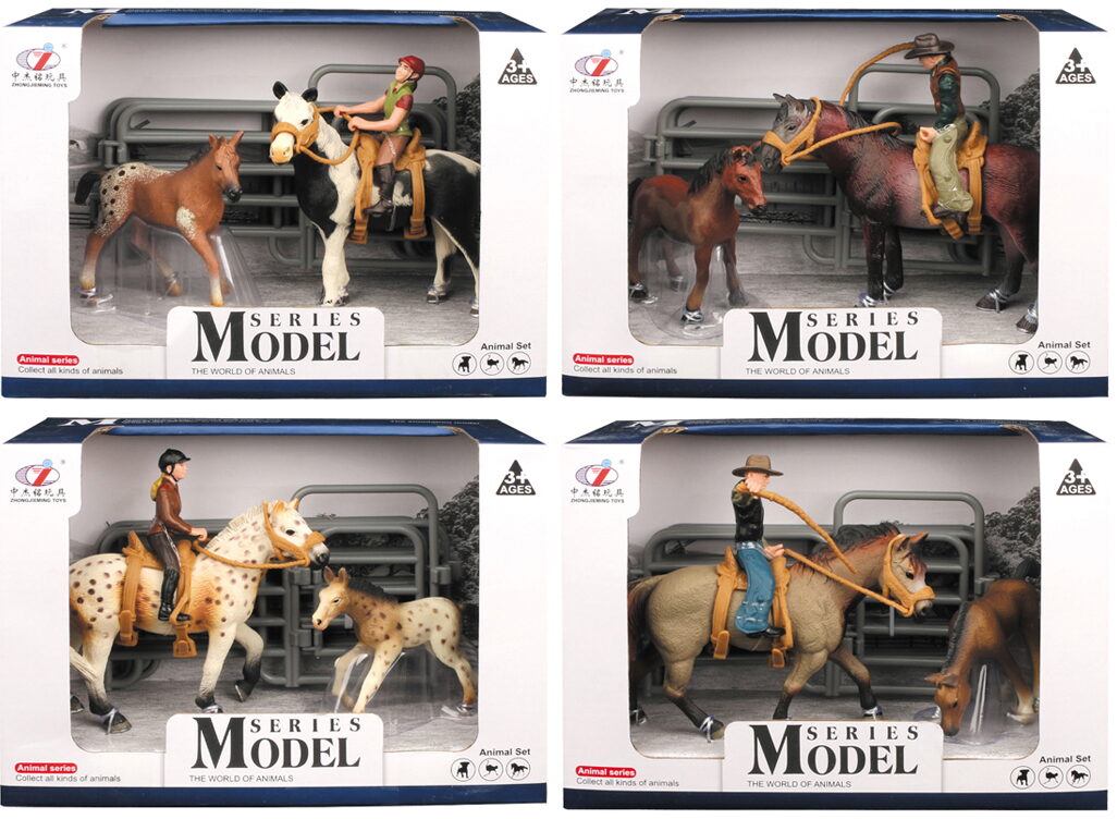 Zvířátka z farmy - Set koně s jezdcem a hříbátkem 4 druhy