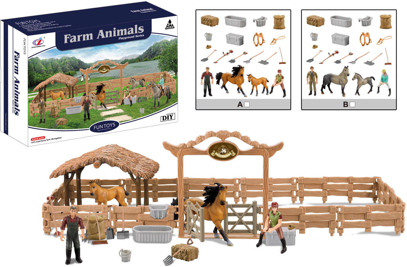 Zvířátka z farmy - Velká ohrada pro koně s jezdcem 2 druhy