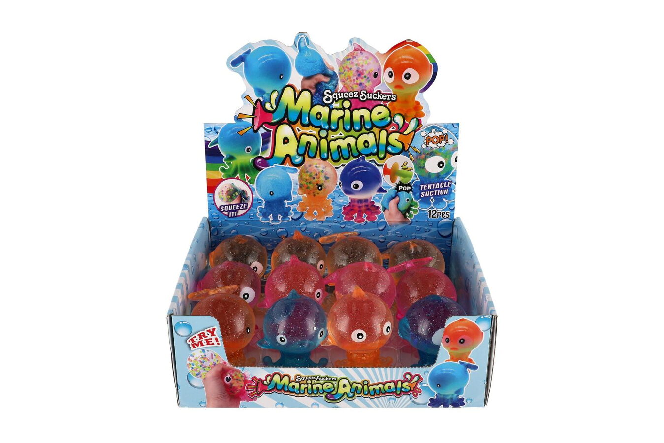Zvířátko mořské antistresové mačkací s přísavkami silikon 9x6cm 3 barvy 12ks v boxu