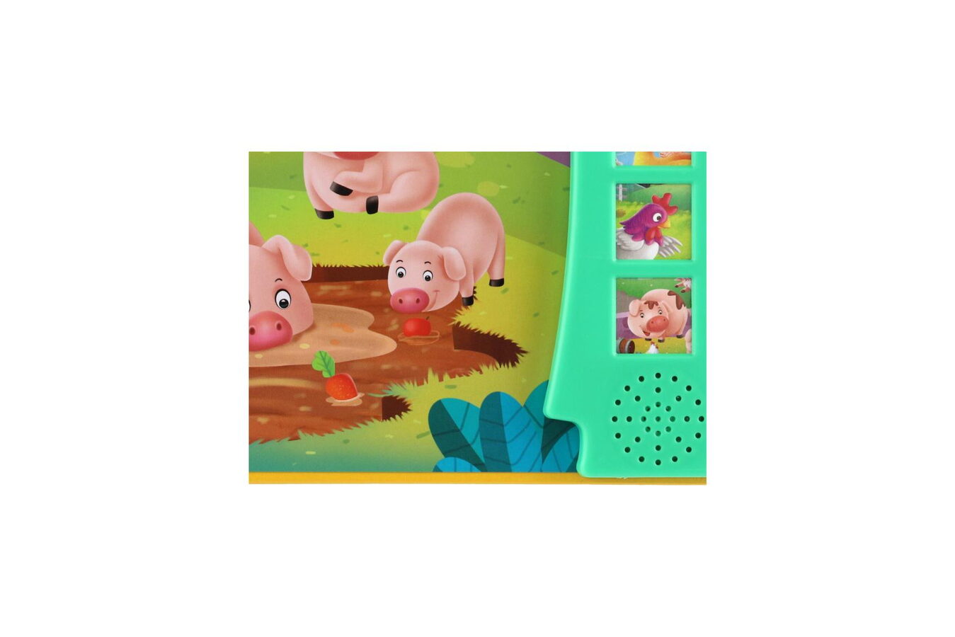Zmáčkněte, prohlížejte obrázky a poslouchejte! Knížka seznámí děti se zvířátky, která žijí na farmě. Stisknou tlačítko a mohou si poslechnout, jak kravička, kůň, slepice, prasátko a další zvířátka.